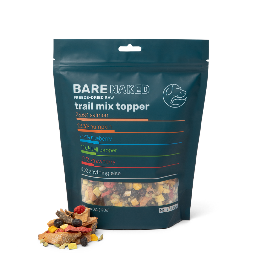 Our Salmon Trail Mix is a straightforward way to add a boost of raw-inspired nutrition to your dog's daily routine. We use a clean blend of freeze-dried wild-caught Pacific sockeye salmon, vegetables, and fruits to provide a concentrated punch of flavor and essential nutrients without any added fillers or artificial extras. Just five honest ingredients that you can actually recognize.